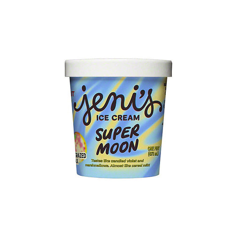 Discover the enchanting taste of Jeni's Super Moon Ice Cream. This unique flavor combines the delicate essence of candied violet with sweet, fluffy marshmallows, evoking a nostalgic taste reminiscent of cereal milk. With its dreamy, whimsical profile, Super Moon offers a delightfully creamy and imaginative treat that's both comforting and extraordinary.